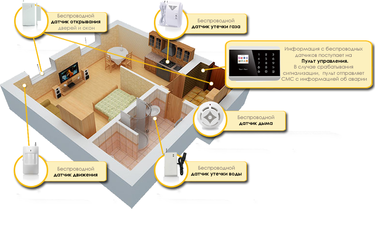 охранная система, которая использует в качестве канала передачи мобильную связь. При срабатывании датчиков тревоги владельцу приходит смс с сообщением о тревоге.