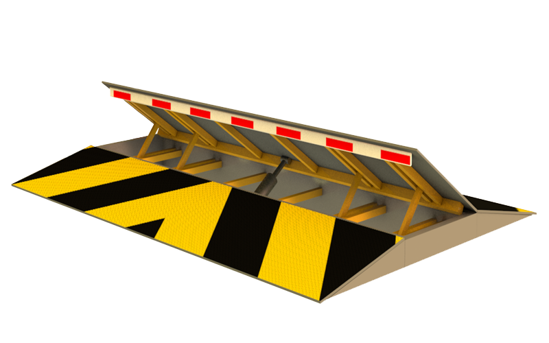Покат может быть выполнен как в правом, так и в левом исполнениях, а так же в сдвоенном исполнении. В сложенном состоянии является пассивным препятствием - "лежачий полицейский"